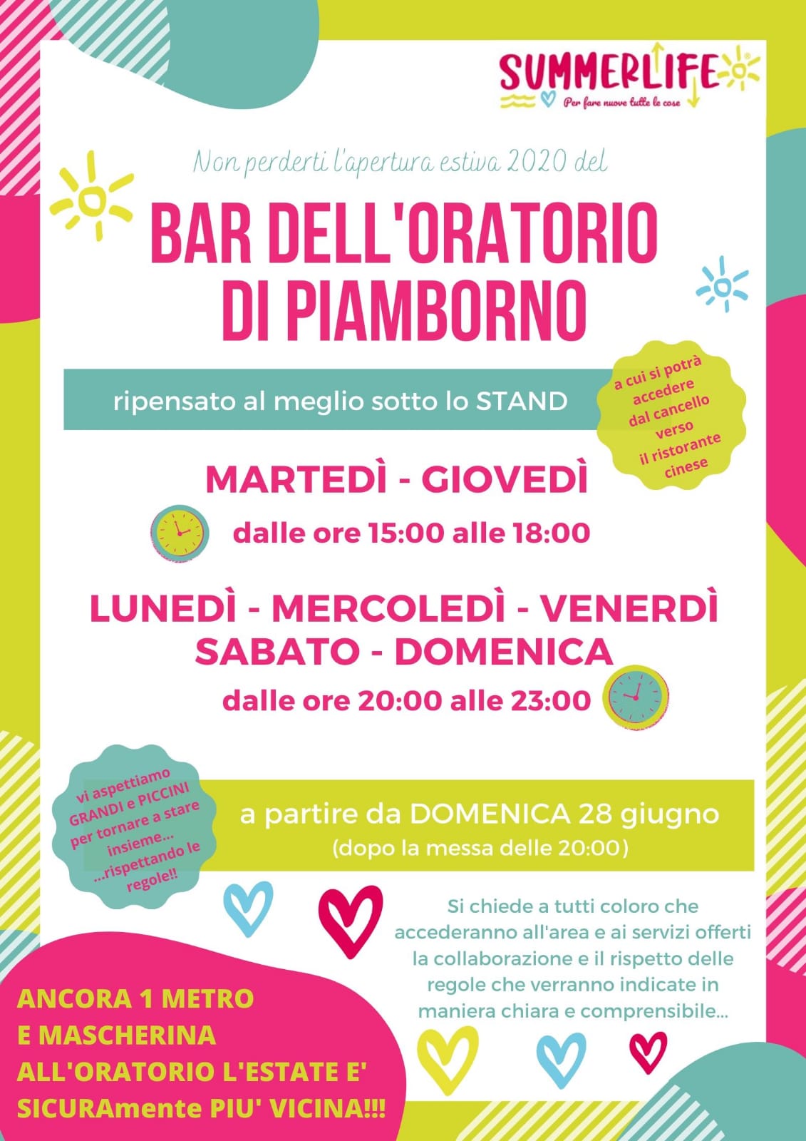 A partire da domenica 28 giugno per Piamborno e giovedì 2 luglio per Cogno riaprono i bar degli Oratori.
