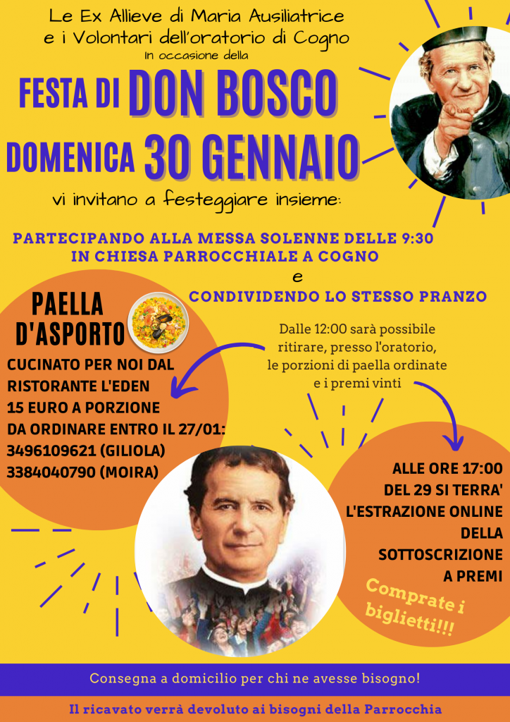 Le ex-allieve di Maria Ausiliatrice e i Volontari dell’Oratorio di Cogno vi invitano a festeggiare insieme la festa di Don Bosco:
